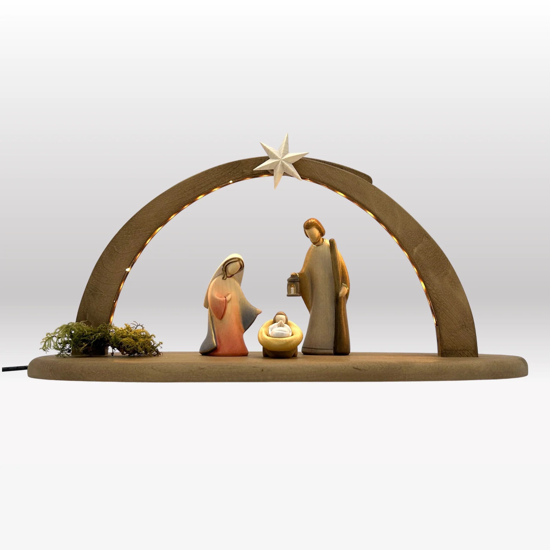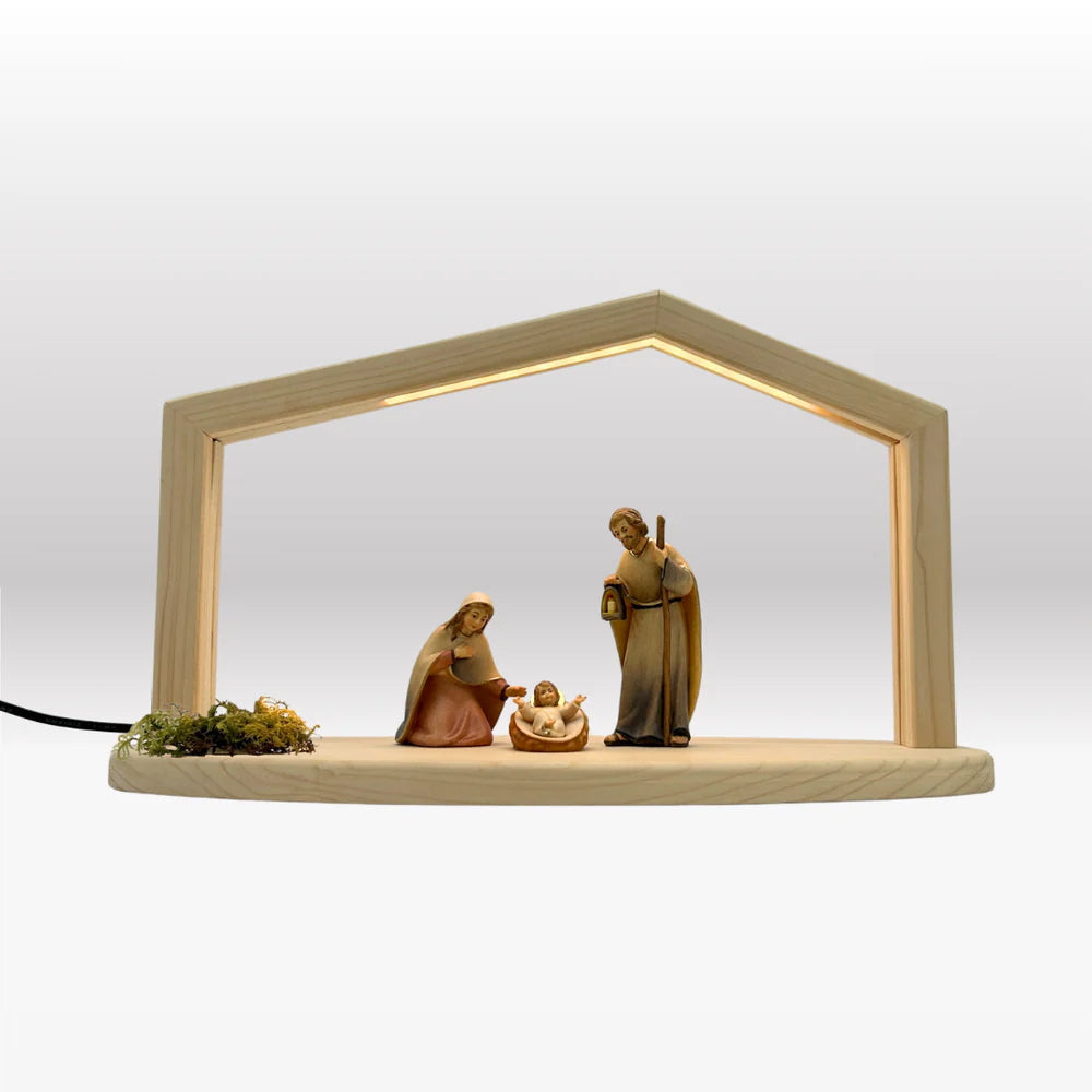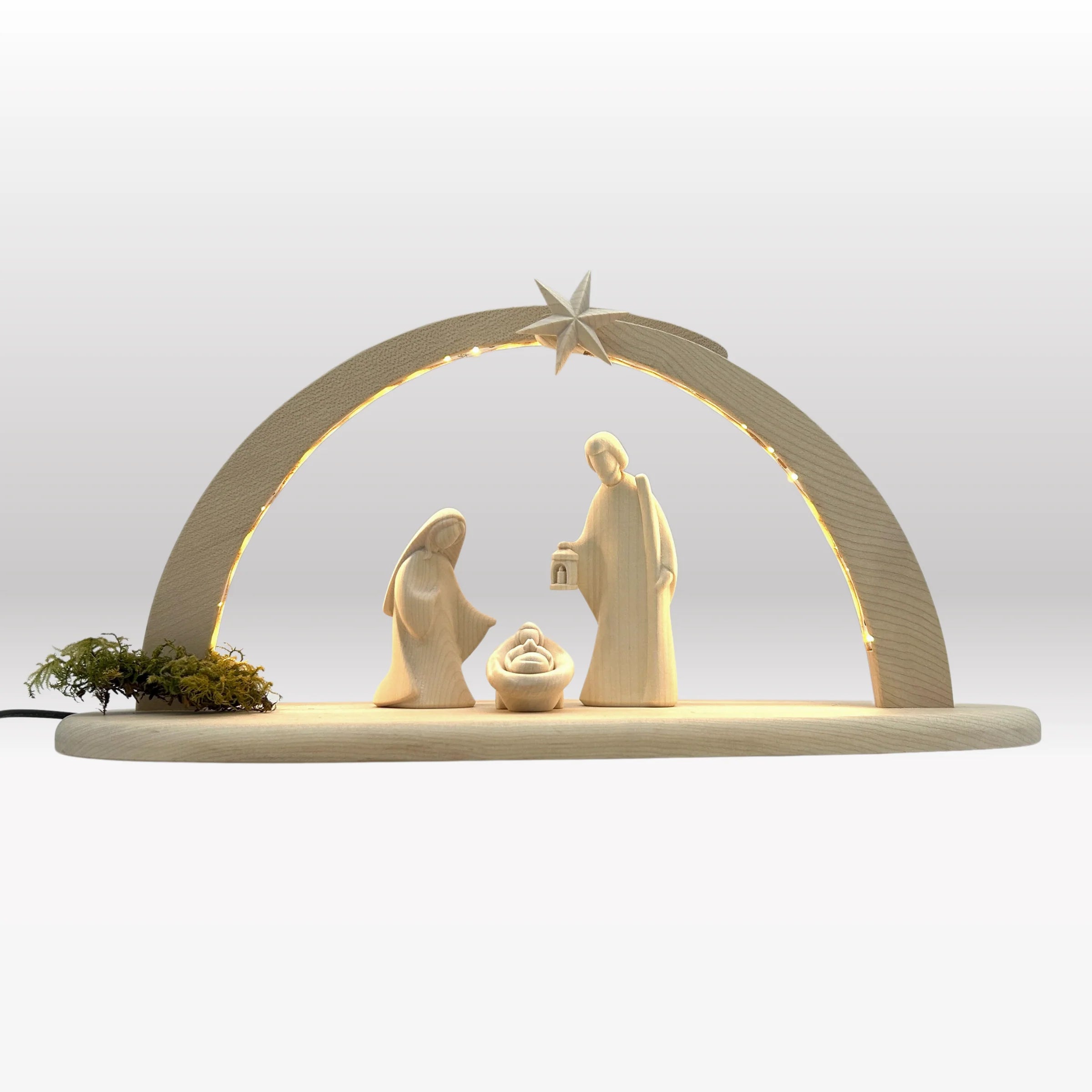 Krippenfiguren Set (11 Figuren) von Licht mit Stall "Akantus Design" natur