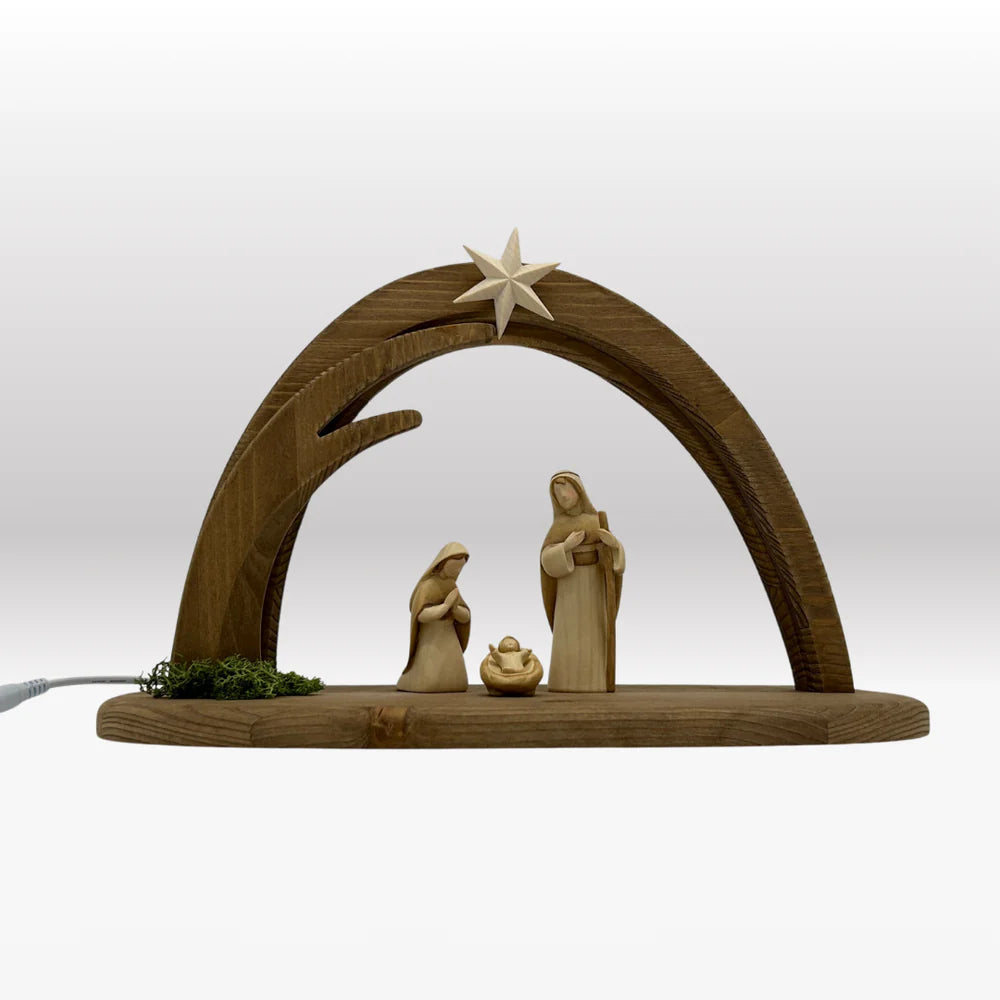 Krippenfiguren Set (11 Figuren) von Akantus natur mit Stall "Sternenschein" dunkel